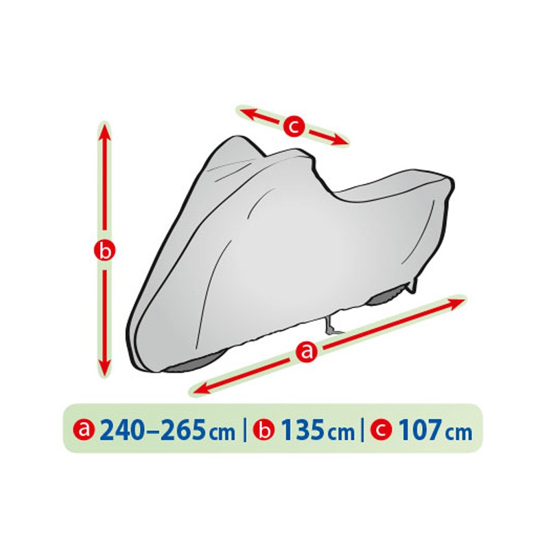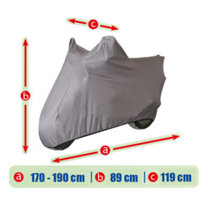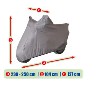 Housse de protection pour moto et scooter haute qualité en toile tri couche associant deux textiles en polypropylène imperméable et d’un film intermédiaire micro-respirant qui permet d’éviter la condensation et la moisissure.